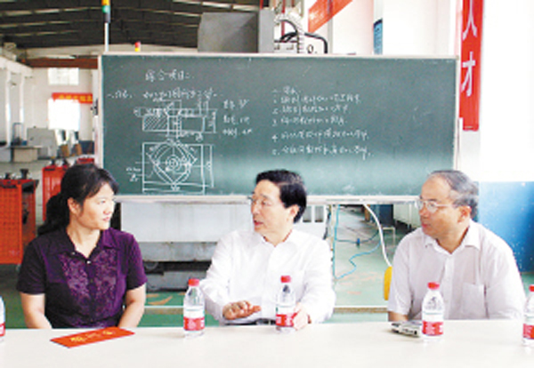 随后,郭声琨来到广西机电职业技术学院现代制造技术中心,看望慰问了正在给学生上课的陆曲波老师,兴致勃勃地参观了数控机床和学生们利用数控技术制造出来的模具,对该院职业教育工作给予充分肯定。他说,职业教育是大众教育、适应教育,它不仅提高人的素质能力,而且提高学生的就业技能。大力发展职业教育在我区既是当务之急,更是长远之策。我区全面实施“十二五”发展规划,加快实现富民强桂新跨越,必须大力实施职业教育,创新职业教育发展模式,改善职业学校办学条件,壮大优质职业教育资源,努力培养造就大批高素质实用技能型人才。