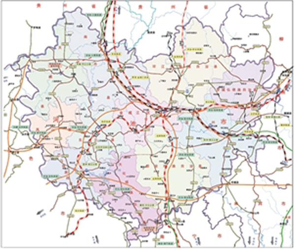 加强公路建设。加快建设国家高速公路网以及与周边地级市之间便捷高速公路通道,全力建设完善市域城乡路网,逐步提升城乡路网公路等级。建成河池-宜州、河池-六寨、河池-都安、河池-百色高速公路,开工建设河池-桂林、贺州-巴马(河池段)高速公路,到 “十二五”期末,全市形成“五射一联线”的高速公路网络;市域范围内国道升级改造为一、二级公路,各县(市、区)之间、产业园区及重要景区之间建成二级以上公路,100%乡镇通等级油(砼)路,90%行政村通硬化路,切实加强农村公路养护,确保县道好路率75%以上、乡道好路率55%以上。建设河池市中心城区物流中心和客运枢纽站,建成一批乡镇公路运输站场。