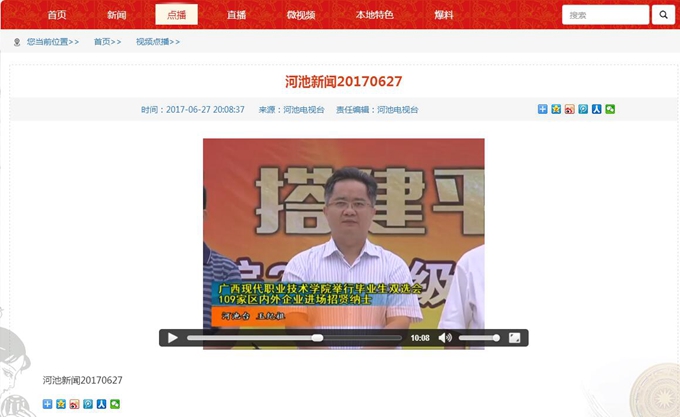 [河池新闻]广西现代职业技术学院举行毕业生双选会 109家区内外企业进场招贤纳士 来源: 发布时间:2017-06-28 11:32:56 浏览次数: 次 【字体:小 大】 【注:请点击以下“河池视频网”网址进入观看,“广西现代职业技术学院举行毕业生双选会 109家区内外企业进场招贤纳士”新闻报道从10分02秒开始】 河池视频网网址:http://www.hcbtv.com/getNewsInfo.action?flag=video&newsId=1461 新闻截图: 【打印正文】 相关信息