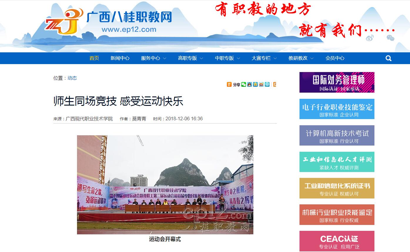 [八桂职教网]师生同场竞技 感受运动快乐 来源: 发布时间:2018-12-07 11:15:00 浏览次数: 次 【字体:小 大】 新闻截图: 终审:administrator 【打印正文】 相关信息