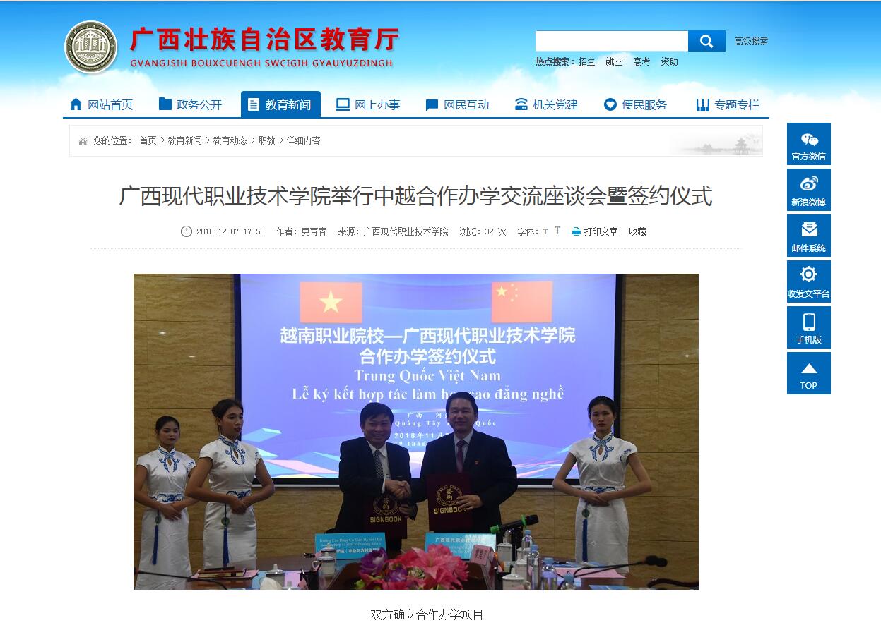 [自治区教育厅官网]广西现代职业技术学院举行中越合作办学交流座谈会暨签约仪式