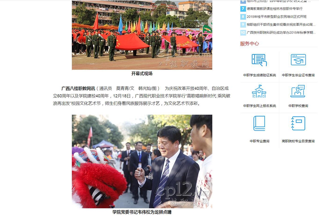 [八桂职教网]校园文化艺术节 展壮乡多彩美 来源: 发布时间:2018-12-21 19:24:37 浏览次数: 次 【字体:小 大】 作者: | 日期:2018-12-21 19:24:37 | 浏览数:194 | 今日浏览数:1 新闻截图: 【打印正文】 相关信息
