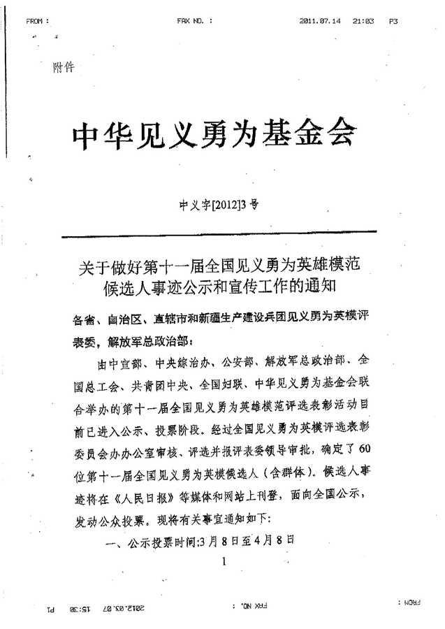 附件:关于做好第十一届全国见义勇为英雄模范候选人事迹公示和宣传工作的通知(中义字[2012]3号)