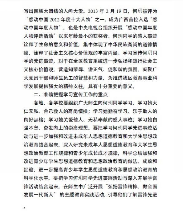 关于在全区教育系统组织开展学习宣传“感动中国2012年度人物”何玥同学先进事迹活动的通知 来源: 发布时间:2013-03-29 15:16:15 浏览次数: 次 【字体:小 大】 【打印正文】 相关信息
