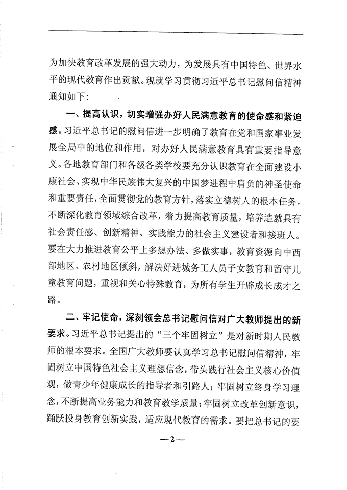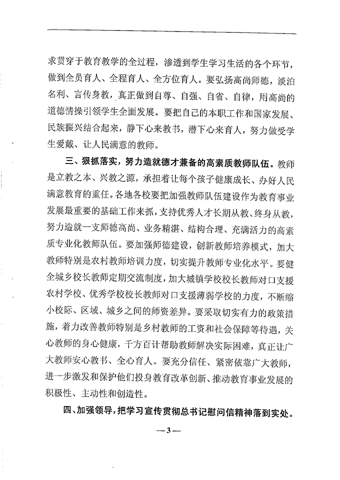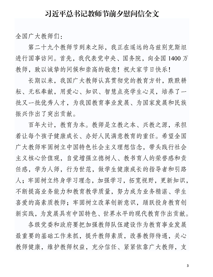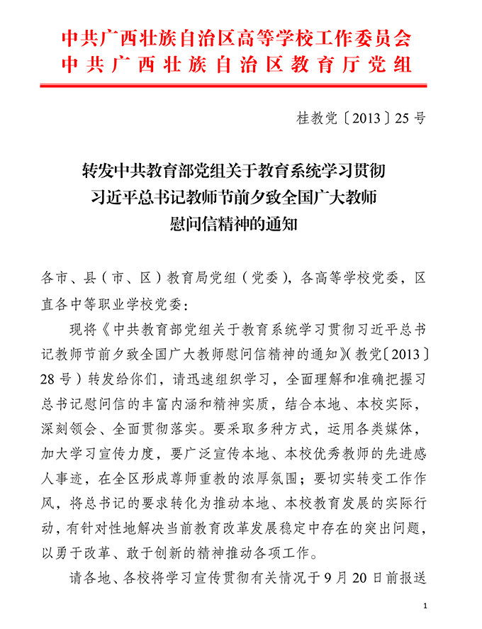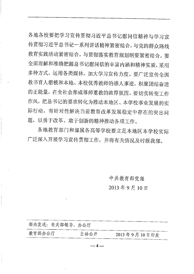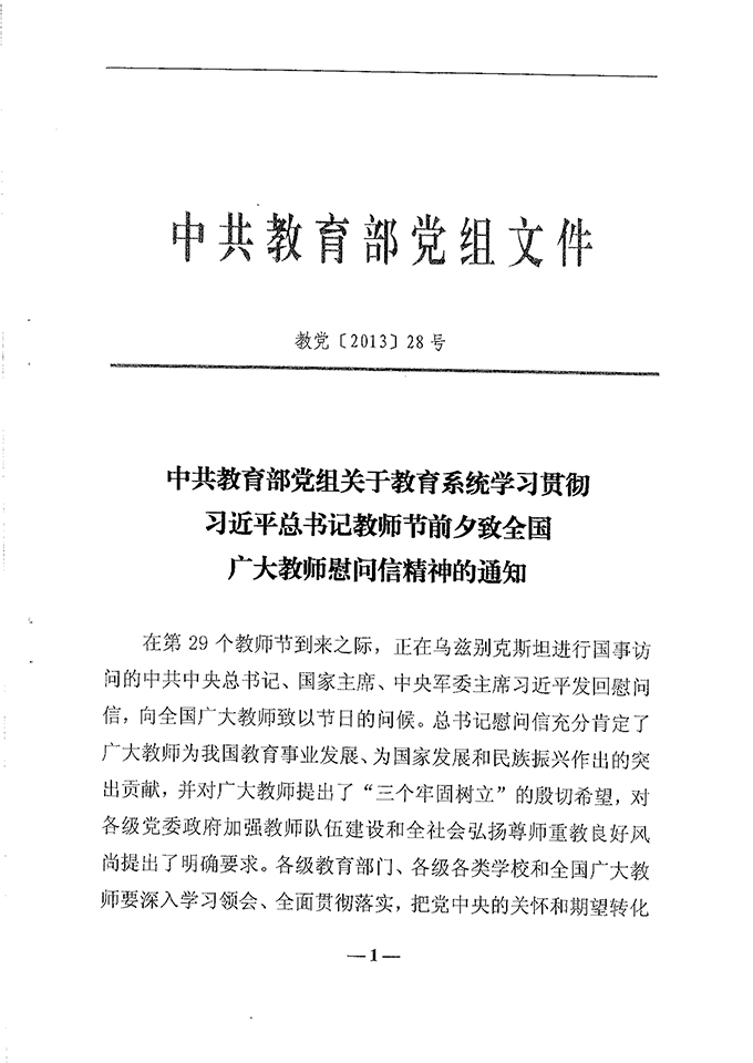 转发中共教育部党组关于教育系统学习贯彻习近平总书记教师节前夕致全国广大教师慰问信精神的通知 来源: 发布时间:2013-09-12 11:32:13 浏览次数: 次 【字体:小 大】 【打印正文】 相关信息
