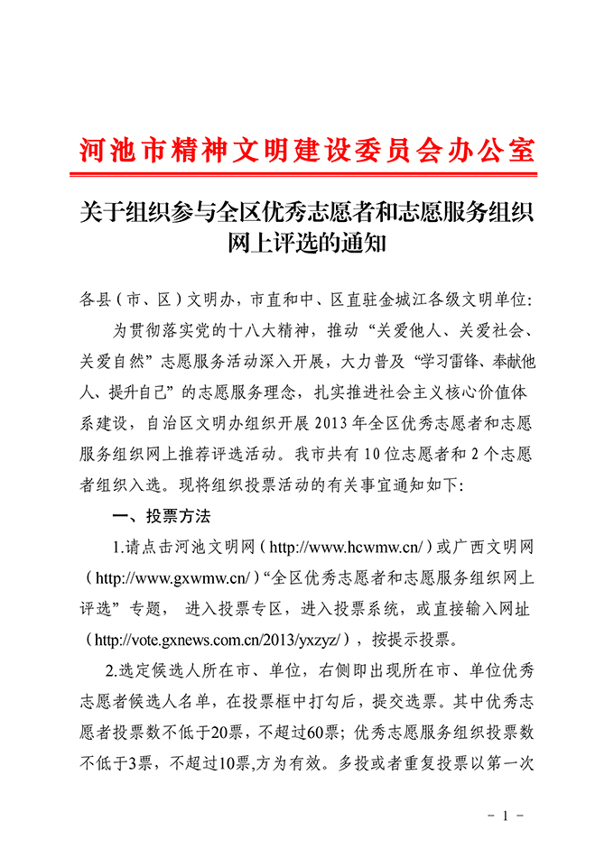 关于组织参与全区优秀志愿者和志愿服务组织网上评选的通知