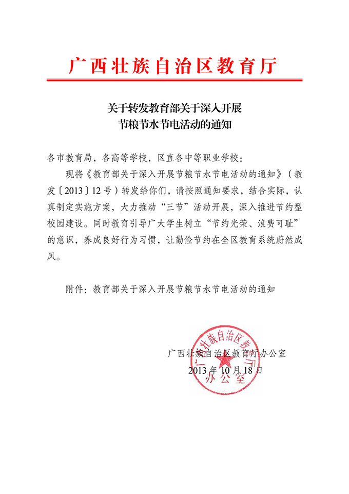 关于转发教育部关于深入开展节粮节水节电活动的通知