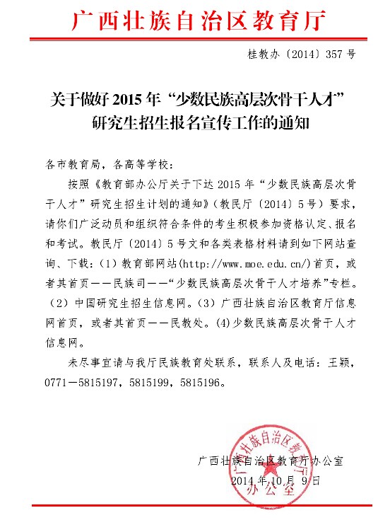关于做好2015年“少数民族高层次骨干人才”研究生招生报名宣传工作的通知