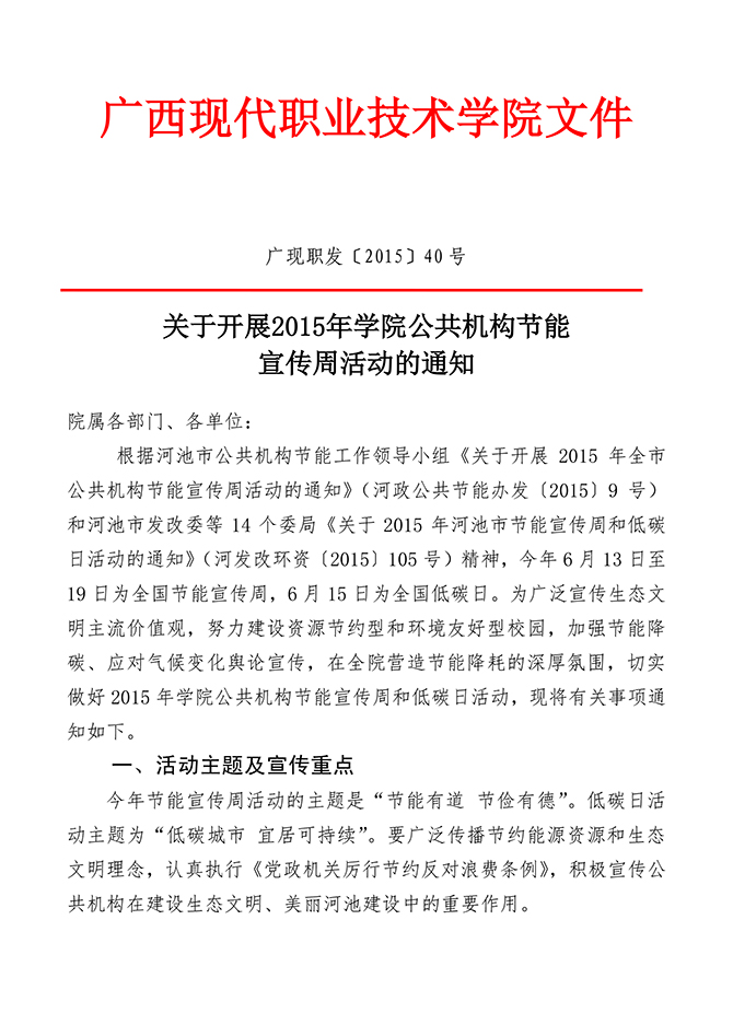 关于开展2015年学院公共机构节能宣传周活动的通知