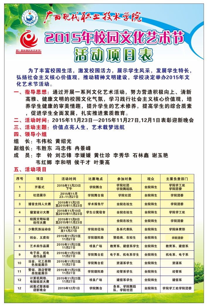 附:2015年校园文化艺术节活动项目表