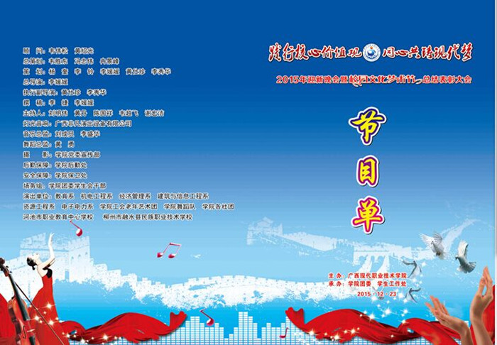 附件:“践行核心价值观 同心共铸现代梦”2015年迎新晚会暨校园文化艺术节总结表彰大会节目单