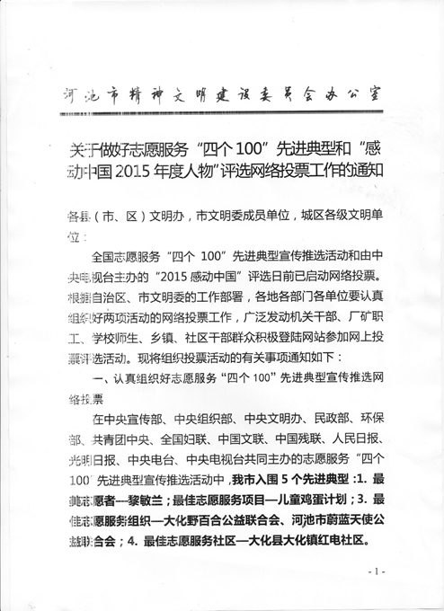 关于做好志愿者服务“四个100”先进典型和“感动中国2015年度人物”评选网络投票工作的通知