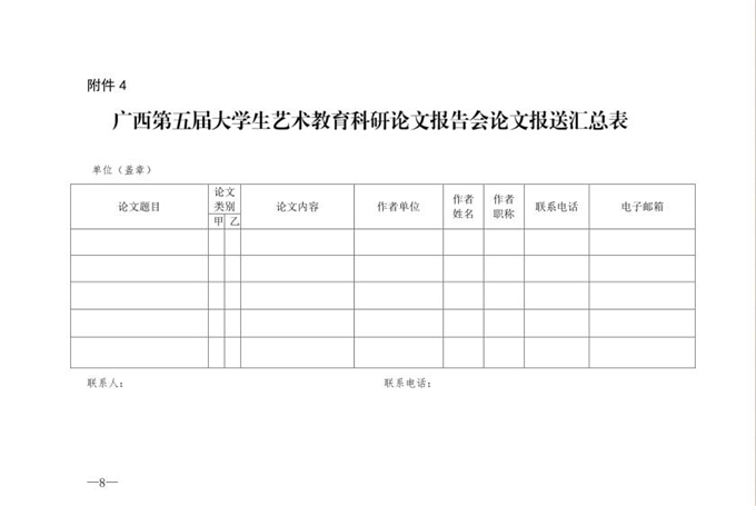 根据自治区教育厅《关于广西第五届大学生艺术展演活动作品报送有关事项的通知》(桂教办〔2017〕340号)文件要求,现将相关通知转发给你们,请按文件要求及时组织开展作品征集工作。各部门、各单位请于2017年7月10日前,将所征集作品材料送至学院党委宣传部202室,由学院党委宣传部整理汇总后上报至活动组委会。
