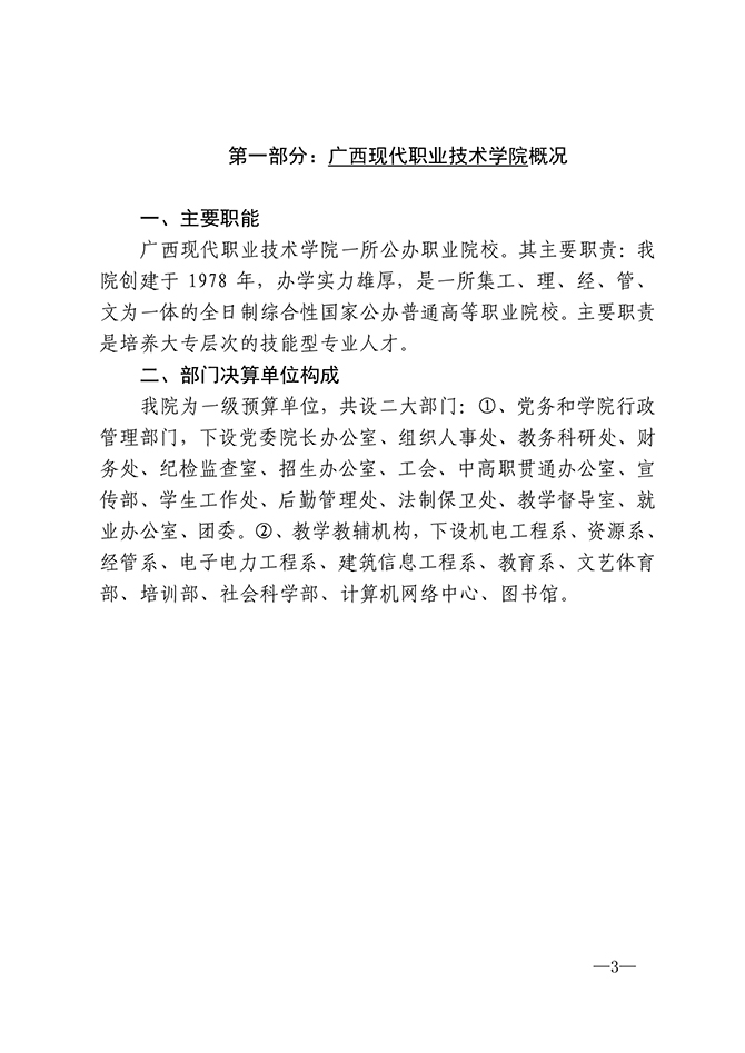 广西现代职业技术学院2017年部门决算 来源: 发布时间:2018-09-18 10:29:18 浏览次数: 次 【字体:小 大】 附件:广西现代职业技术学院决算公开附表.xls 【打印正文】 相关信息