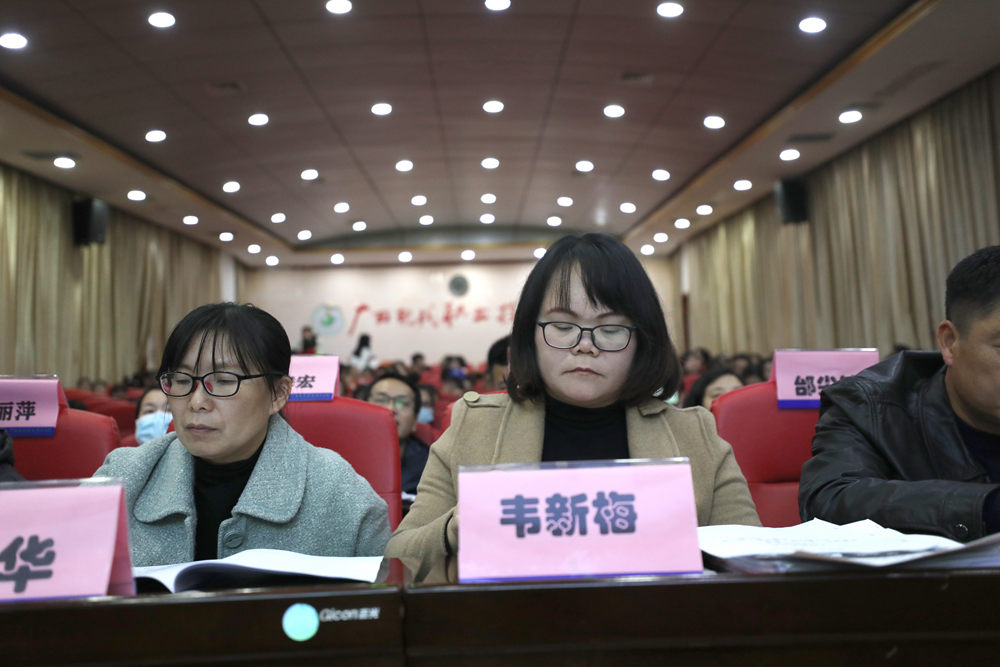 刘志峰主任、韦海宏书记为谭勇进、王日华、邰尖敏、钟凤艳、廖将勇、黄海谋等优秀指导老师颁奖。