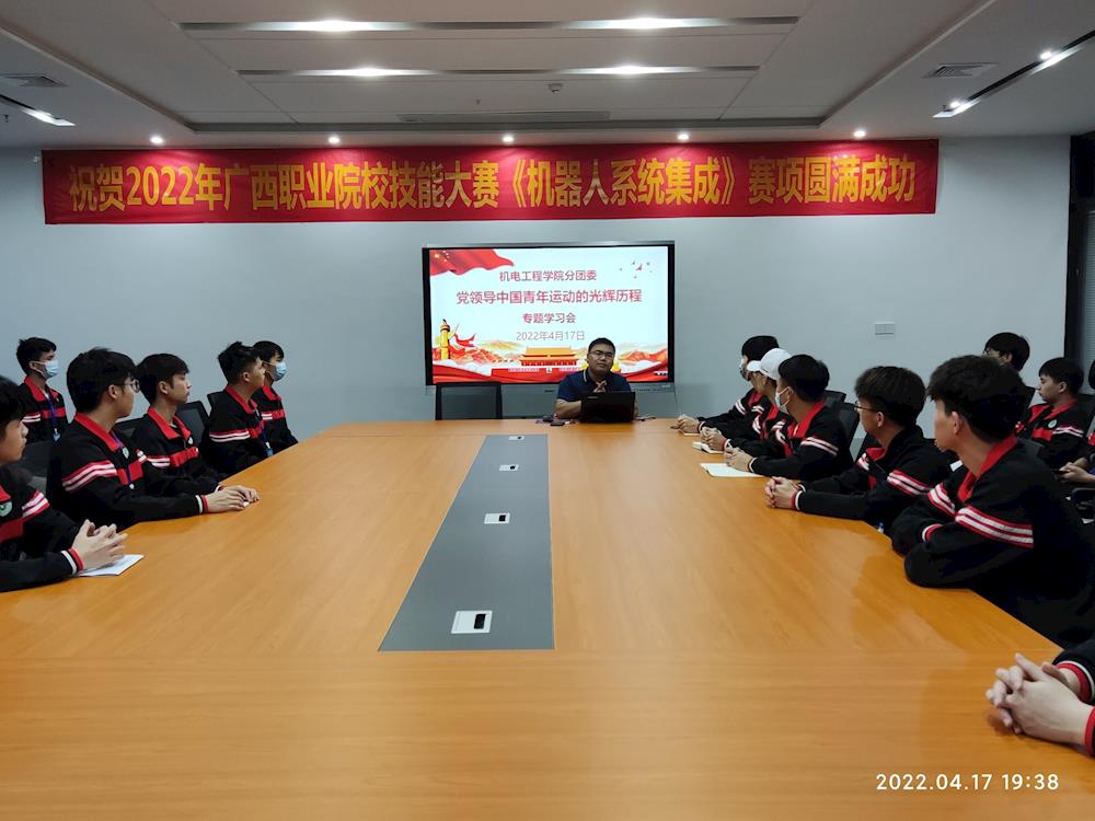 在机电工程学院团委书记吴玉杰老师的主持下,我院“党的青年运动史”专题学习于2022年4月17日晚上七点在机电大楼五楼会议室有条不紊的进行着。同学们态度端正严肃,紧跟党走在时代前列、走在青年前列,展现出我院师生的爱国精神。100年来,我们党始终从确保党的事业薪火相传、确保中华民族永续发展的战略高度看待青年工作,以崇高初心使命感召青年,以科学思想理论武装青年,以不懈奋斗精神激励青年,以广阔事业舞台成就青年,把一代又一代青年团结凝聚在党的旗帜下,为党和国家事业发展作出了重要贡献。