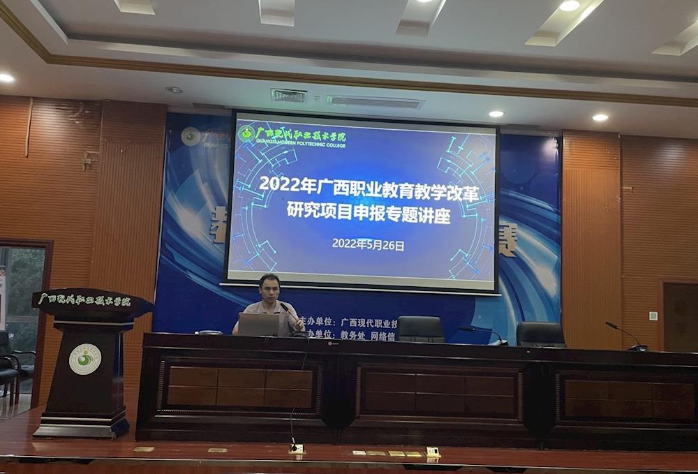 2022年5月26日晚,我校科研处根据今年广西职业教育教学改革研究项目申报工作需要,由何启贤教授在学校第二学术报告厅作了一场以“如何写好一份教改申报书”为主题的专题讲座。