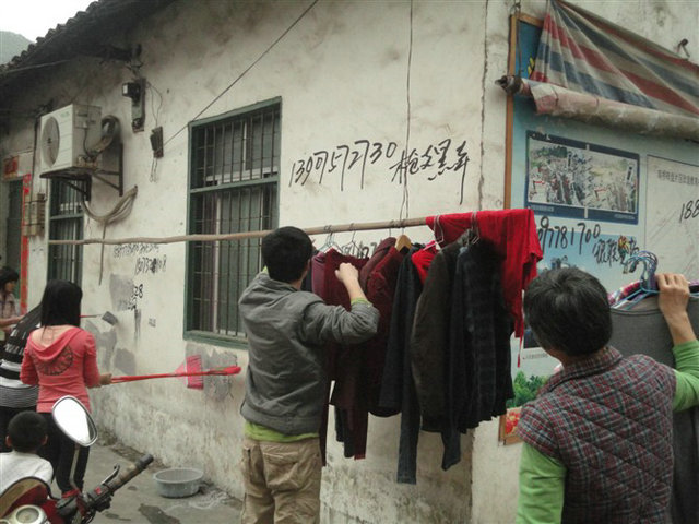 上图:同学们在街上清理“牛皮癣广告”现场。