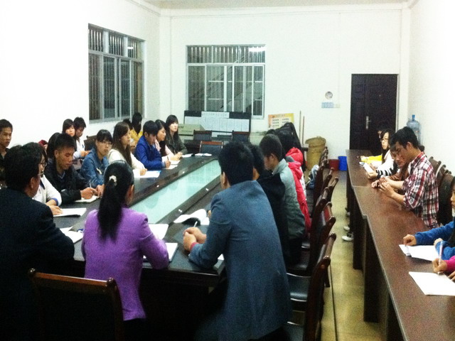 管理系、外语系讯(钟剡、黎锦泉)2012年11月11日晚,管理工程系、外国语系在管理工程系会议室召开团总支、学生会干部工作会议。管理工程系、外国语系党总支副书记黄耀老师,副主任卢森焕老师、覃素香老师以及团总支负责人卢绍迎老师参加会议。会议由学生会主席阮一强同学主持。