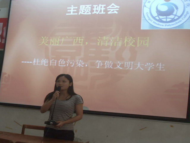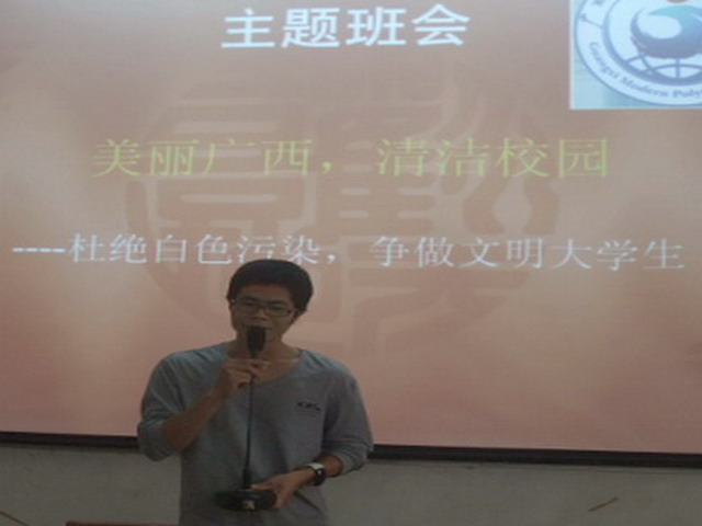 系结合本系实际,组织各班级开展了以“美丽广西·清洁校园”为主题的班会活动,党总支副书记黄耀老师、团总支书记吕璇老师深入各班级,参加了部分班级的主题班会讨论活动。
