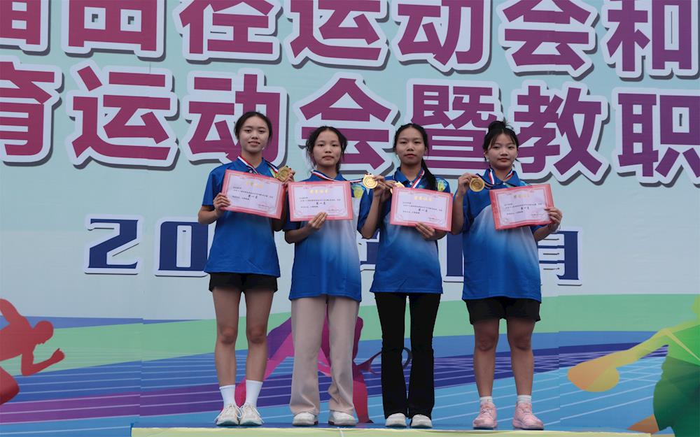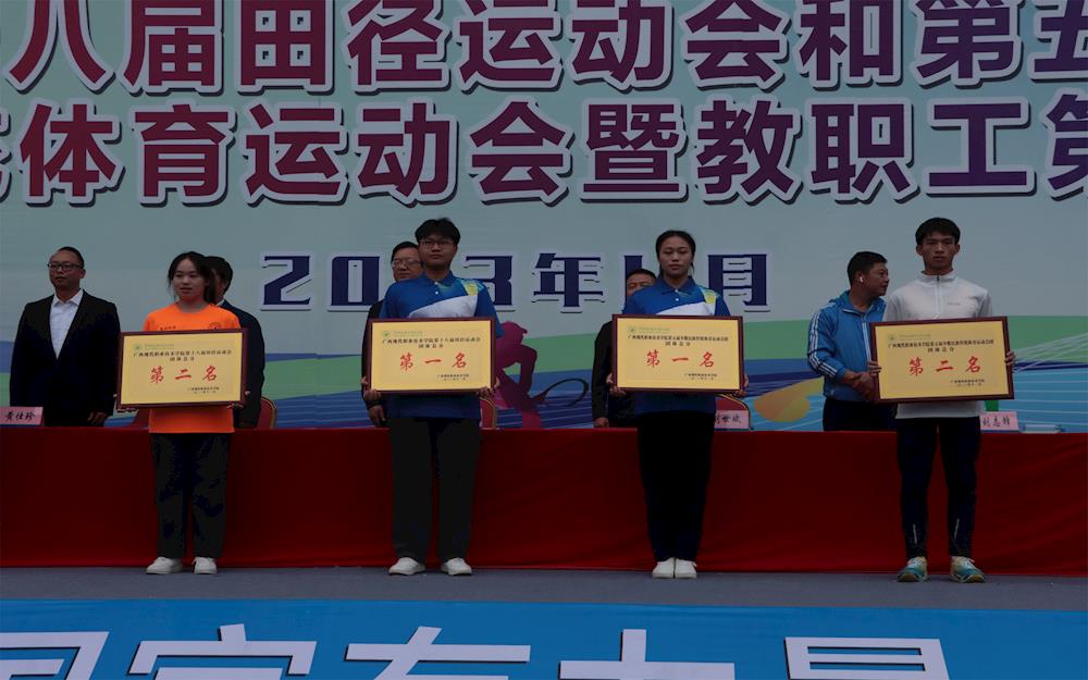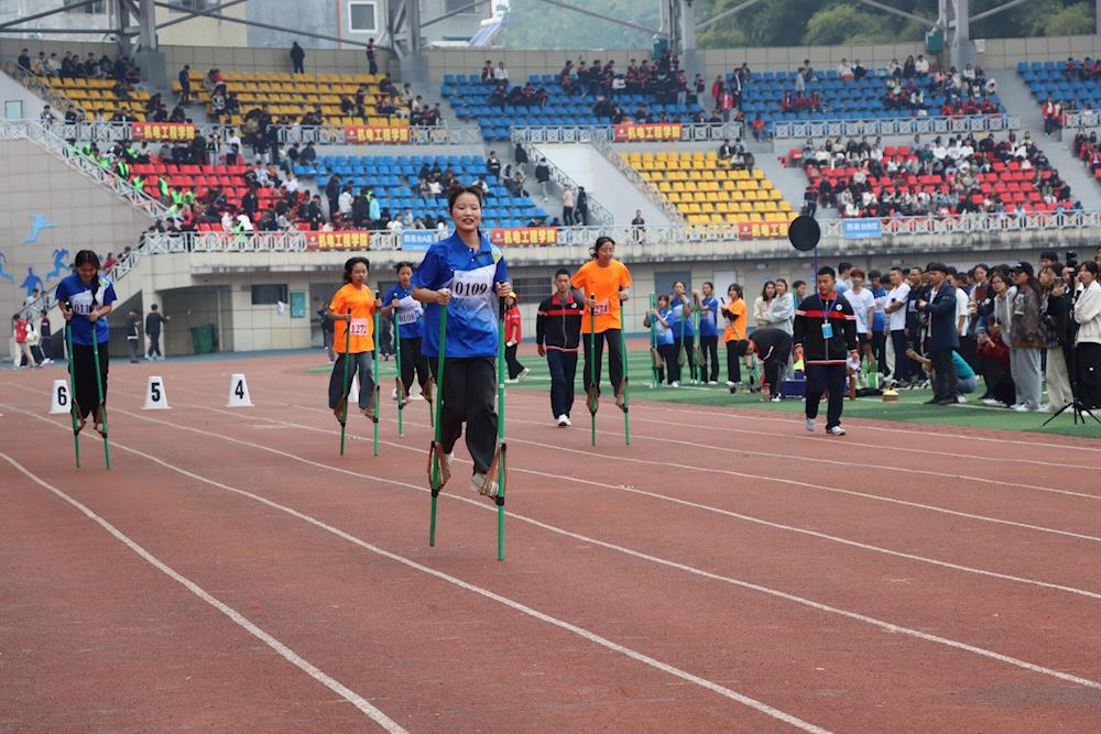 本次运动会包括陀螺旋转、高杆投绣球、背篓投绣球、50 米三人板鞋竞速、 男女混合 50×2 三人板鞋竞速迎面接力、50 高脚竞速、拔河等少数民族传统体育竞技项目,以及100 米、200 米、400 米、800 米、1500 米、300 米、 4×100 米接力、4×400 米接力等径赛项目和跳高、跳远、三级跳远、铅球、标枪等田赛项目。比赛过程中,我院运动员通过顽强拼搏、自强不息的精神和胜券在握的实力,在各单项比赛中取得了优异的成绩,众多的金牌、银牌、铜牌收入囊中,最终荣获田径运动会团体总分第一名、少数民族传统体育运动会团体总分第一名和体育道德风尚奖等奖项。