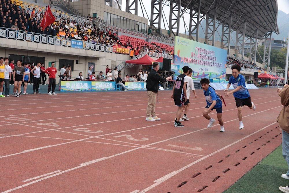 11月23日至25日,我校第十八届田径运动会、第五届少数民族传统体育运动会暨教职工第六届运动会开幕式在西校区足球场举行。在开幕式上,由学校龙狮艺术团、女子龙狮、古兰鼓等团体共同呈现开场舞《鼓乐齐鸣迎盛会》。学校仪仗队、彩旗方阵、志愿者方阵、裁判员方阵,以及各教职工代表队、各二级学院学生代表队以良好的精神风貌依次入场。随后,裁判员代表和运动员代表分别宣誓。开幕式结束后,运动会各项比赛紧锣密鼓地展开。
