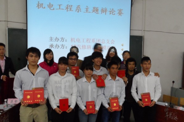 机电工程系讯(胡朗乐) 11月11日晚上7:30分,在第三阶梯教室,由我系12汽修二班发起,12汽修一班、三班和12模具班共同参与并举行了一场精彩绝伦的辩论赛,此次辩论赛的论点是“大学生兼职的利与弊”。