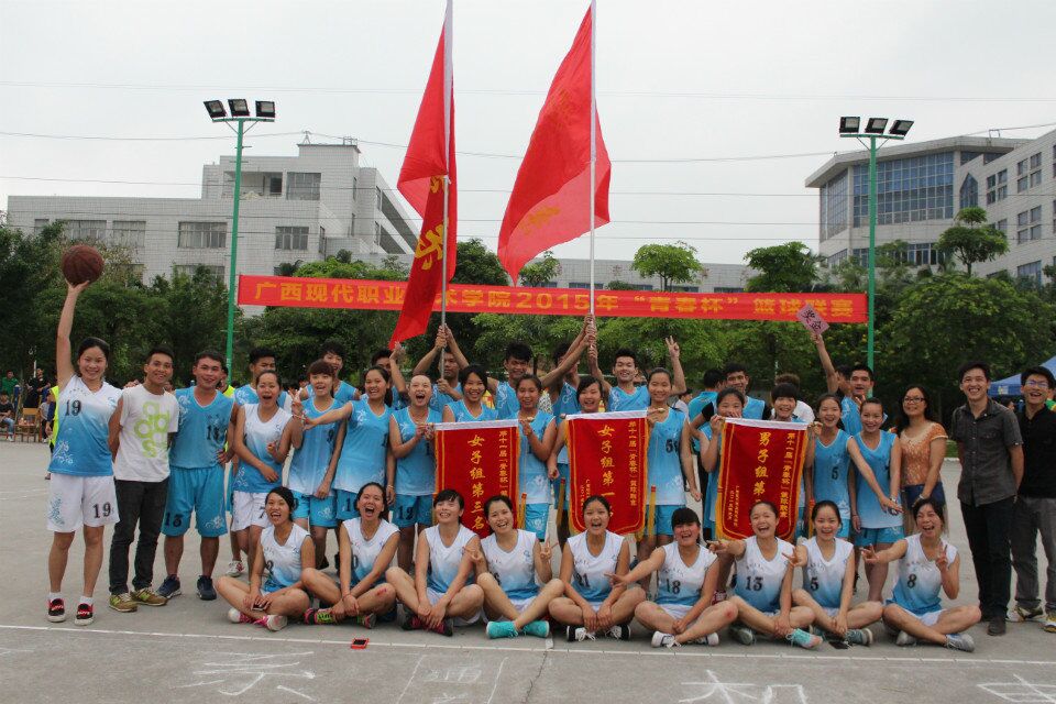 (经教系讯)广西现代职业技术学院第十一届“青春杯”篮球赛于5月5日下午17:00分别在学院一号、二号场地进行总决赛,经教系党总支副书记李铃、团总支书记叶秉高,教练陆华豪老师、黄令老师莅临现场指导。经教系的篮球运动员们在赛前积极训练,赛中秉承 “友谊第一,比赛第二”的精神奋勇拼搏,三支代表队均取得了骄人成绩。