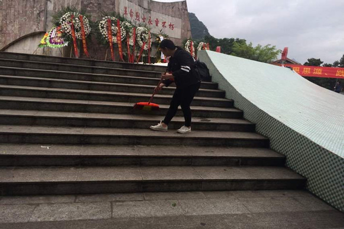 同学们怀着崇敬的心情步行前往韦拔群烈士陵园,庄严的仪式在一片肃穆中拉开帷幕。主持人简要介绍之后,全体师生默哀三分钟,缅怀英勇先烈。而后,向烈士纪念碑三鞠躬,师生向韦拔群烈士墓敬献花圈。活动最后,我系团委学生会委员会成员及学生代表清扫烈士陵园,代表着同学们会牢记历史,在学习、工作中要发扬求真务实、埋头苦干、无私奉献、敢于担责的精神,以自己的实际行动告慰不朽的英雄,以此缅怀革命的光荣事迹,祭奠烈士的英灵。