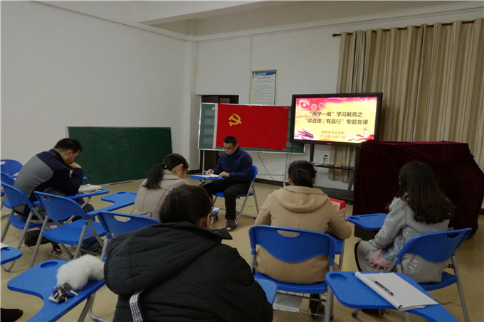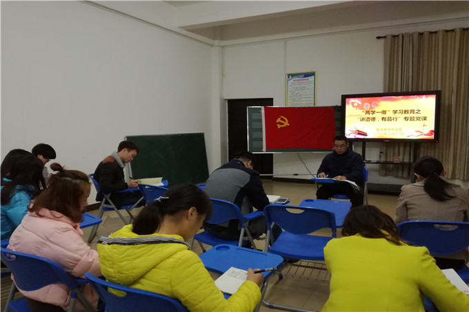 2016月11月27日晚上8:00,教育系党总支在三办102室开展“讲道德、有品行”专题党课,学院纪委书记冉景峰主讲,我系党总支全体教师党员及部分学生党员参加。