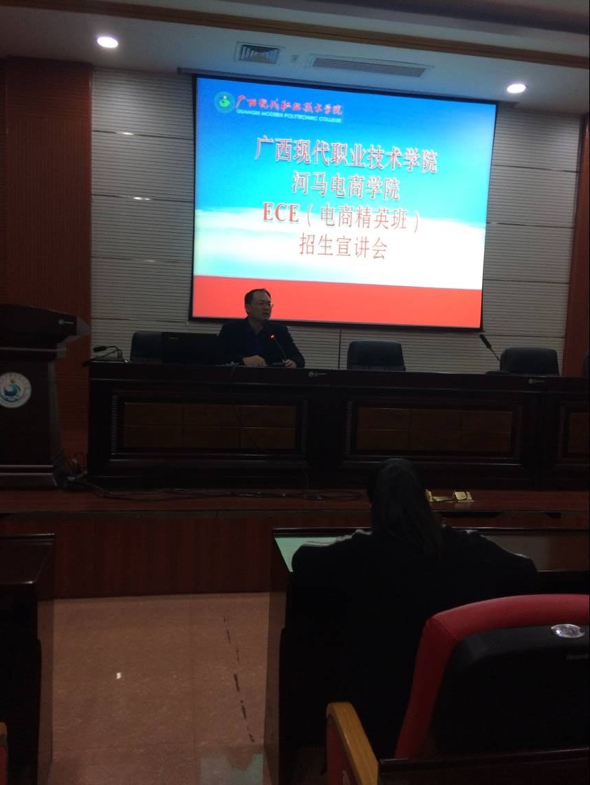 (经济管理系 讯)2017年3月19日,经济管理系15级全体同学在班主任的带领下来到了第二学术报告厅,参加由经管系主任、电商学院院长杨奎主持的ECE(电商精英班)招生宣讲会。在宣讲会上,同学们认真聆听,积极思考。ECE班是广西现代职业技术学院与河马电商学院共建的电商精英班,培训内容分为运营推广岗位、电商美工岗位、电商客服岗位三大块,涵盖了淘宝开店的整个流程。同学们不仅能学到丰富的知识,考取全国认证的电商从业资格证书,还能享受学员福利,学成后百分百包就业,安置在全国大中型城市大型电商平台企业。在此,希望同学们把握机遇,积极报名培训。