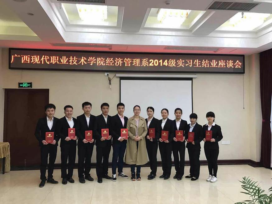 (经济管理系讯)3月22日上午,我院校企合作单位——东昇国际大酒店在其酒店内为我院14级酒店管理专业实习生举行实习结业座谈会,经济管理系党总支副书记叶秉高应邀参加,广西第一湾国际旅游股份有限公司副总裁吴德强参加座谈。