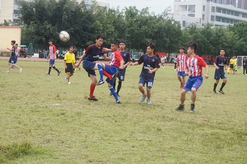 首先,在本次足球赛中,参赛球员以高昂的斗志完美的演绎了足球的无穷魅力与无边激情。在这次比赛中,双方球员以精湛地脚法、完美地盘带、巧妙地过人技术为同学们呈现了一场精彩的足球赛。于此同时,在此次足球赛中也涌现出了很多的足球健儿,他们的存在为球赛升温不少,使得球赛异常的精彩。