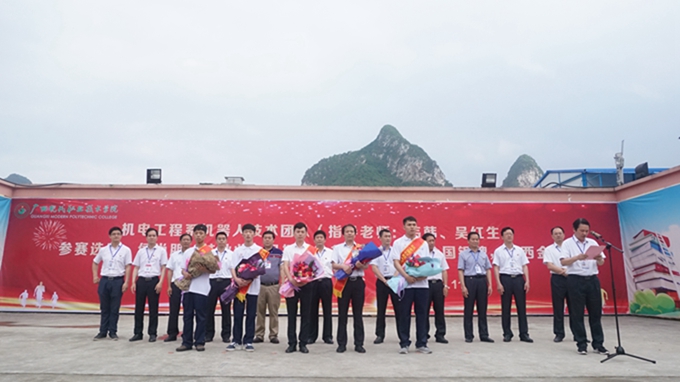 机电工程系荣获国家级技能大赛团体二等奖的师生载誉归来,学院举行盛大欢迎仪式 来源: 发布时间:2018-05-14 11:59:58 浏览次数: 次 【字体:小 大】 机电工程系荣获国家级技能大赛团体二等奖的师生载誉归来学院举行盛大欢迎仪式5月11日下午,学院校园里锣鼓喧天、群狮欢腾。学院举行隆重欢迎仪式,热烈迎接机电工程系荣获全国职业院校技能大赛高职组工业机器人技术应用比赛团体二等奖的师生载誉归来! (图片转自学院新闻,侵删。) 【打印正文】 相关信息