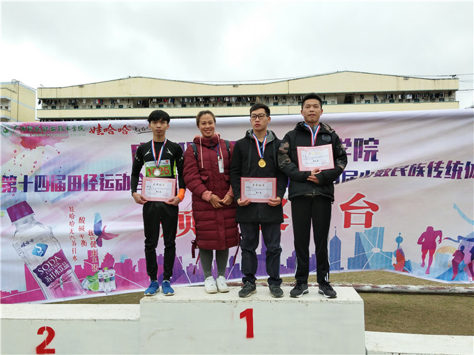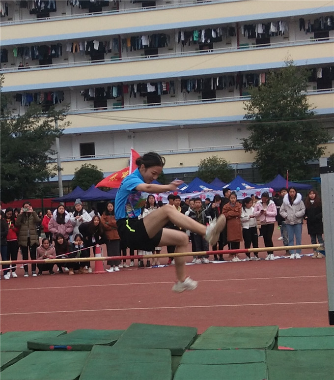 女子跳高:17学前12班覃燕清、18学前衔接6班滕冬辉、18小教13班覃娟海分别荣获第一名、第二名、第四名。