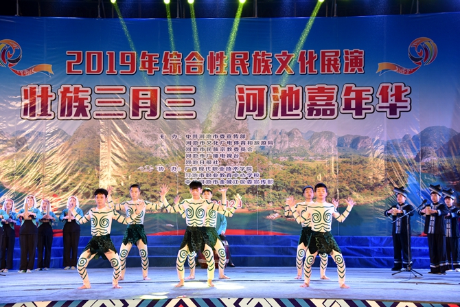 2019年4月2日,“壮族三月三•河池嘉年华• 职教展风采” 活动在河池市体育广场拉开帷幕,活动由河池市委宣传部、河池市文广新体局、市民宗委、河池电视台、河池日报社主办,广西现代职业技术学院、河池市职业教育中心学校和中共金城江区委宣传部共同承办。 教育系皮鼓、壮族蚂拐歌舞、丰收舞、毛南族民歌等7个民族节目参加了综合性民族文化表演。教育系展区展示了五十六个民族的景泰蓝工艺画、民族技艺刮画等富有民族风情的手工艺作品,供游人展演与体验,让广大观众在欣赏综合性民族文化表演的同时,也看到了民族传统工艺生生不息的传承。 活动前期,教育系精心筹备组织,系部领导和教师夜以继日的对学生的动作整齐度进行细致的训练,展演获得了社会各界及学院领导的一致好评,充分展示了我系学生优秀的技能水平和民族文化进校园的成果。
