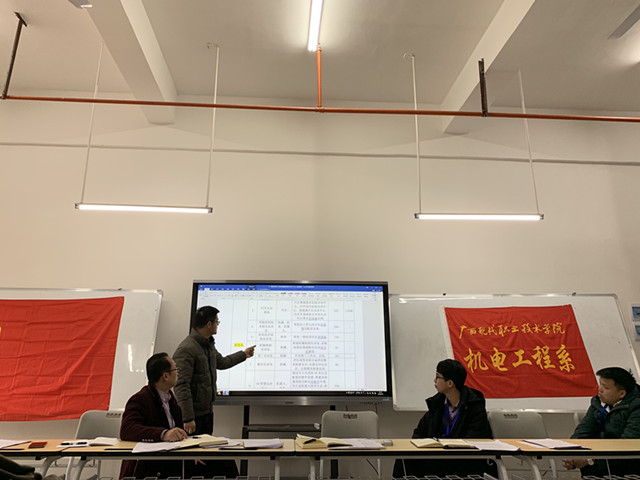 3月4日上午,我系在机电大楼C502召开2018-2019年度下学期教职工大会暨机电工程系党支部党员会议。系部主任岑华、系部党支部书记黄仕珍,系部副主任吴杰、韦韩、蒙港、覃壮出席会议。会议由系部党支部书记黄仕珍主持。 会上,系部系部副主任吴杰、韦韩、蒙港、覃壮分别作了本学期实习、就业、技能考证,科研工作、实训室管理,教学、内部质量诊改,驾校招生等工作的部署。 系部主任岑华在会上强调,全系教职工在新学期要继续以强烈的责任感和良好的精神面貌,以饱满的热情投入到工作岗位上。并给全系教职工领学人民日报文章《你凭什么在单位立足》。 又讯,系部教职工大会结束后,紧接着召开机电工程系党支部党员会议。会议由党支部书记黄仕珍主持。 会上,教师预备党员覃壮同志、岑土恩同志,学生党员汪云田同志、车申七同志提出按期转为正式党员的申请。在各支部党委委员同志代表党支部宣读综合考察意见后,与会党员对申请人能否按期转为正式党员进行讨论并开展无记名投票。经大会讨论,同意4名同志转为中共正式党员。