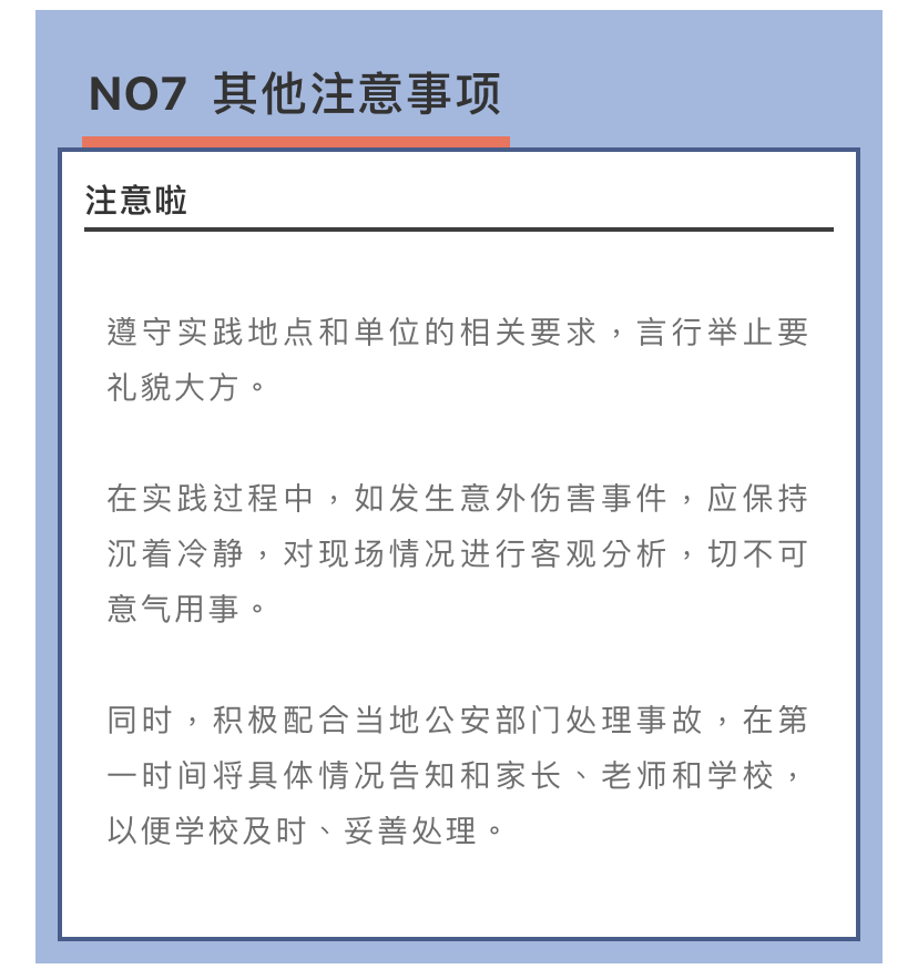 正所谓安全无小事、天气情况、交通安全、身体状况、异地出行等因素都会给大家的实习过程带来或多或少的安全隐患,为了保证各位同学的顶刚实习活动顺利进行,来看看小编给你准备的实习社会实践安全指南吧!