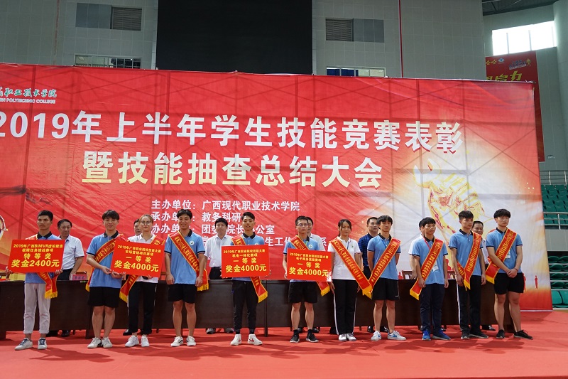 会上学院表彰了我系上半年学生技能竞赛优秀指导老师岑华主任、韦韩副主任。本次表彰大会还表彰了在本年度上半年技能竞赛有突出成绩的学生们。我系“工业机器人应用技术”、“制造单元智能化改造与集成技术”获得国赛一等奖,奖金30000元;“机电一体化赛项”获得广西区赛一等奖,奖金4000元;“新能源汽车技术与服务赛项”、“汽车检测与维修赛项”、“数控机床装调与改造赛项”获得区赛三等奖,奖金1000元。