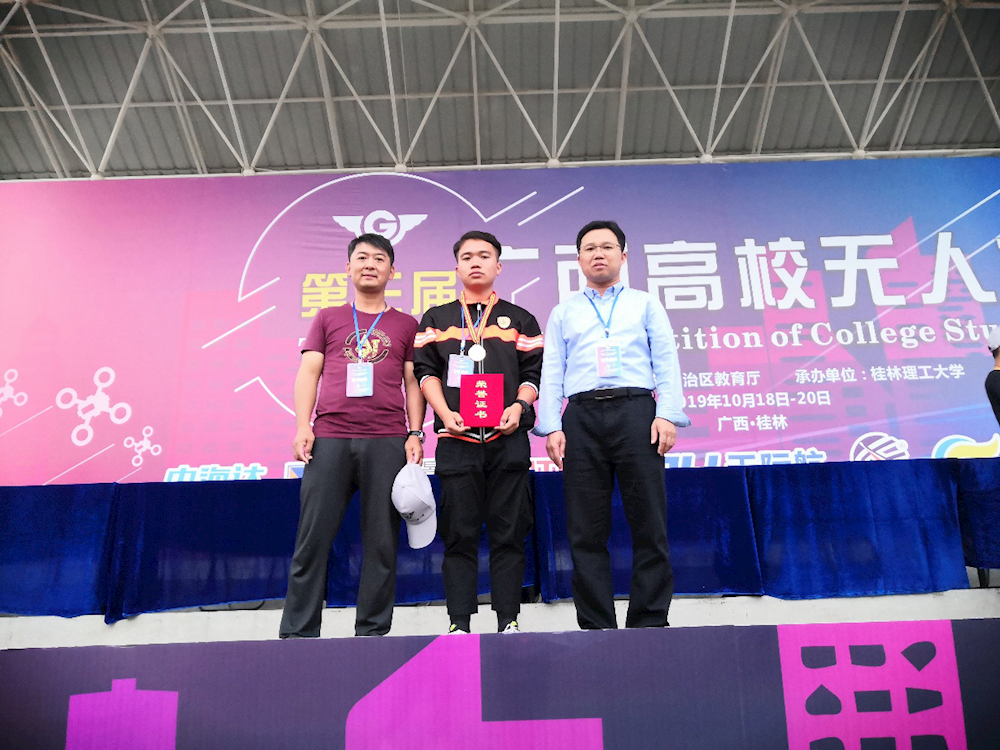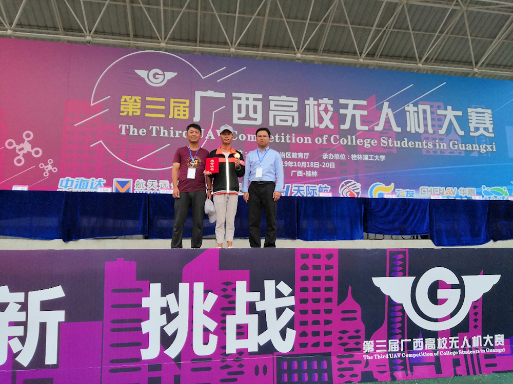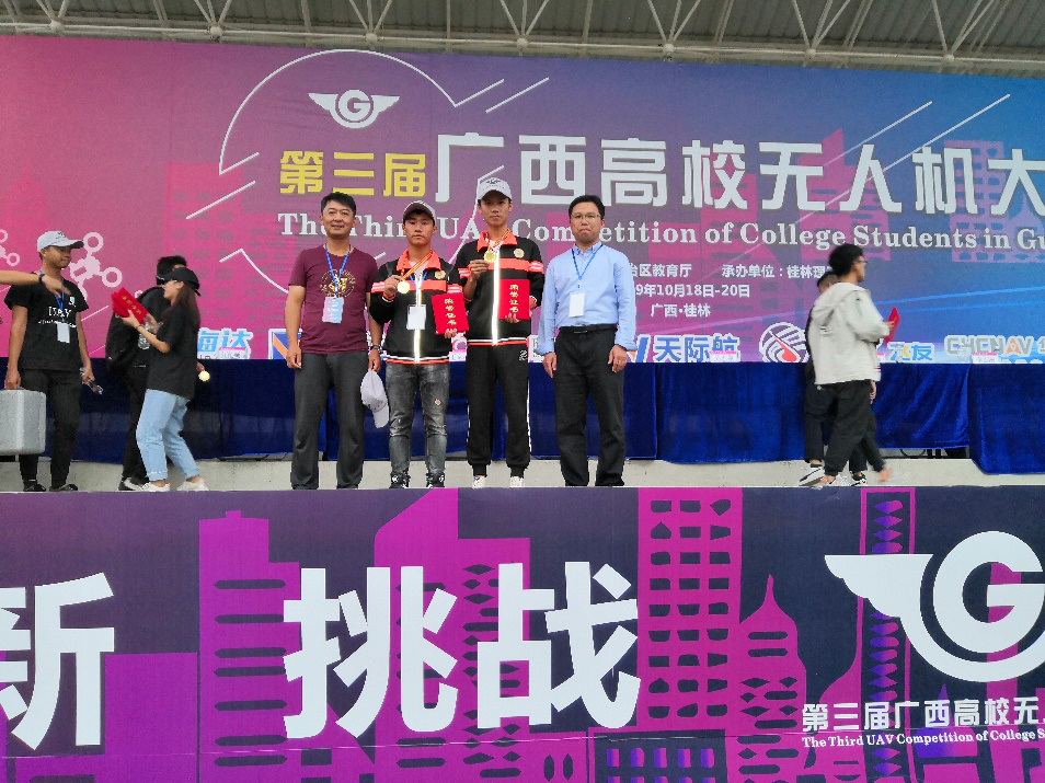 由广西壮族自治区教育厅主办的第三届广西高校无人机大赛,于2019年10月18日到20日在桂林理工大学比赛,本次大赛本科与专科学生同台竞技,共有156支队伍参赛,每一支队伍可以根据自身情况选择性参加9个项目的比赛,本次大赛中,每一个项目的参赛队伍均超过60支队伍,竞赛异常激烈,我系学生努力力拼搏,发挥正常水平,最终荣获6个一等奖、4个三等奖,团体总分一等奖第一名。