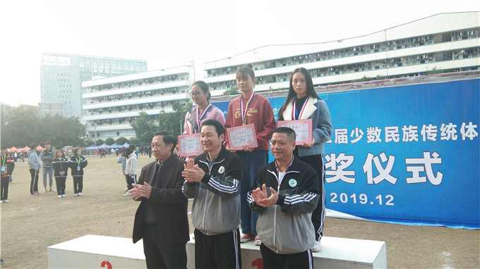 女子高杆绣球项目:女子一队(18小教8班卢拉、18小教16班蔡红早、18小教11班赵莉)荣获第一名;女子二队(19小教15班黄丽莹、19学前2班陆娇梅、18小教11班黄艳芬)荣获第三名;