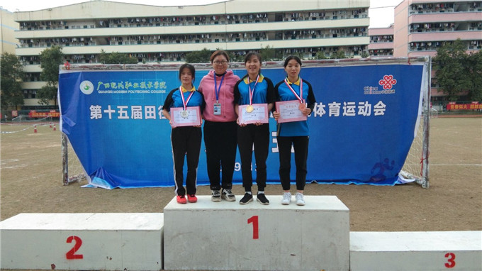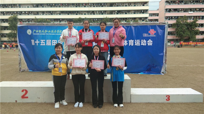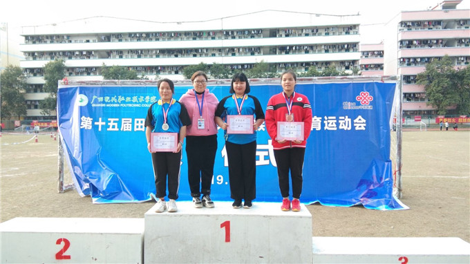 女子跳远:18小教6班黎水凤、18小教10班许爱仁、19学前5班李玉桃、19小教20班陶小莲分别荣获第一、第二、第三、第四名;