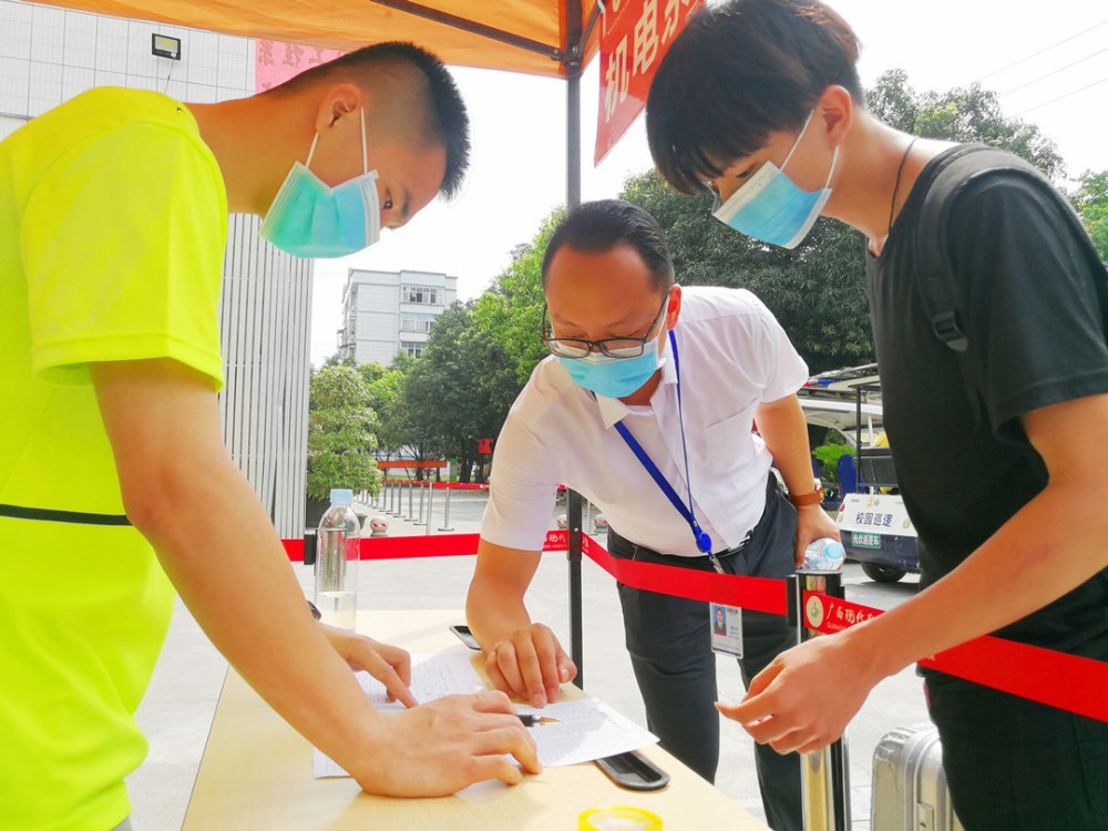 据悉,为精准到位、细致排查每个环节,确保每一位学生顺利平安返校,机电工程系分别在火车站、城北站、城西站等站点设置接待点,接待员引导每一位到站学生进行体温检测登记、身份核验后方可乘坐学校专车返校。