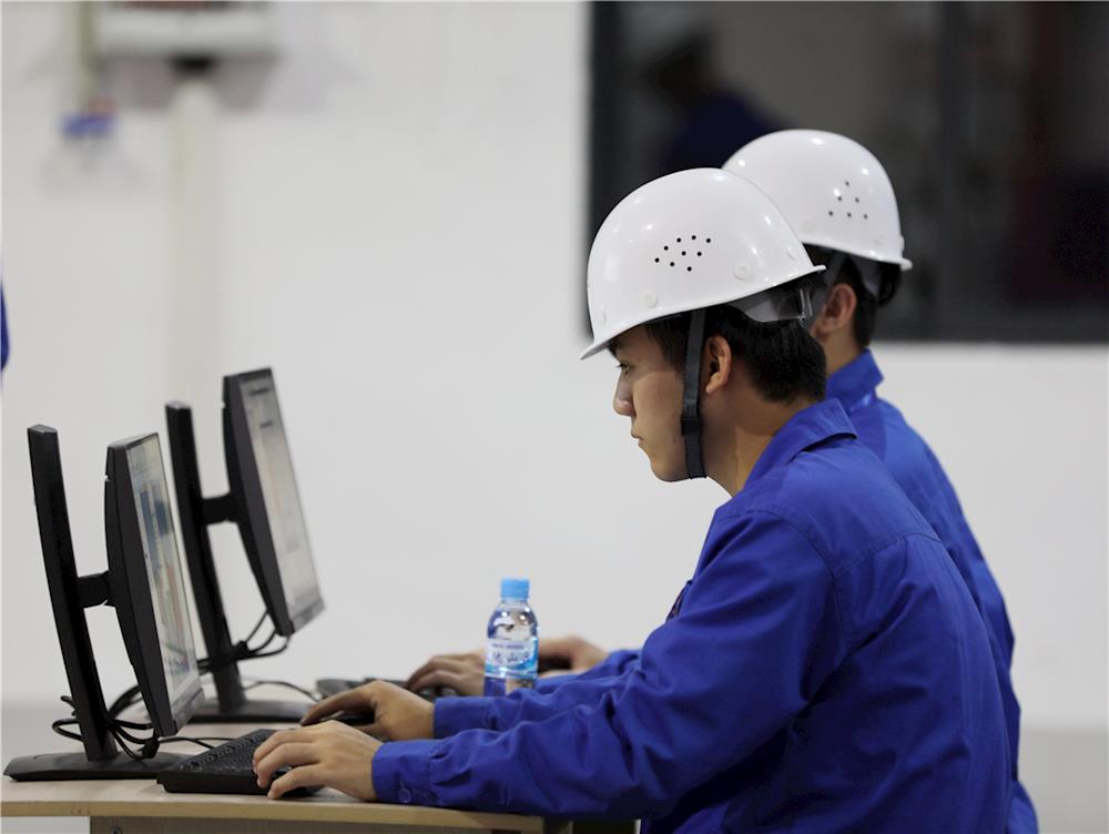 据悉,《制造单元智能化改造与集成技术》赛项是以汽车行业轮毂的生产制造为背景,采用智能制造技术完成制造单元系统的改造与集成,充分体现“两化深度融合”在传统制造业升级改造中的技术应用。竞赛过程中,选手需要根据任务书要求,自行设计实施方案,在三维软件中搭建竞赛平台并完成产品生产流程仿真,完成真实竞赛平台的系统搭建和线路连接,对工业机器人进行点位示教和控制程序编制,对数控系统进行加工程序编制和通讯参数设置,对视觉系统进行检测识别参数设定和优化,对可编程控制器进行控制程序编制及调试,从而实现轮毂产品根据不同的生产工艺要求及订单需求,完成仓库存储、数控加工、打磨加工、检测识别、分拣入位等工艺流程,通过制造执行系统对生产过程信息和设备状态实时采集和可视化显示,智能终端利用云端实现安全的制造数据远程监控。
