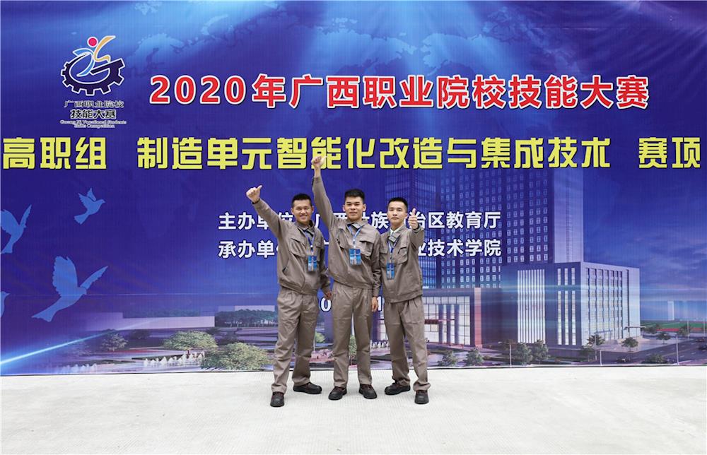 10月19日,由自治区教育厅主办,我院承办的2020年广西职业院校技能大赛(高职组)《制造单元智能化改造与集成技术》赛项在学院机电综合大楼举行。来自全区9所高职院校的9支参赛队共27名选手参加了此次比赛。经过23个小时的激烈角逐,由学院机电工程系岑华、涂翔宇老师指导的参赛选手潘路、廖远杨、肖宇,不畏强手,努力拼搏,最终以总分第一名的成绩荣获该赛项一等奖。