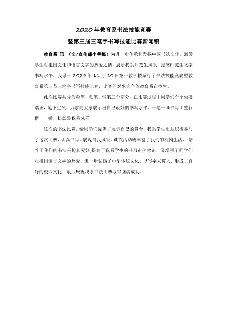 2020年教育系书法技能竞赛 暨第三届三笔字书写技能比赛