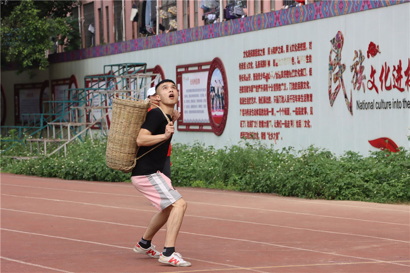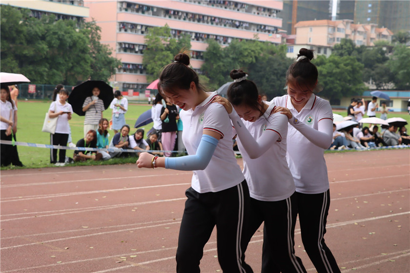 在覃琳琳书记的发言和韦海宏副书记的宣布下,活动正式开始。经我系领导研究决定,本次活动是由教育系各班级为单位组成的运动团队,规则是以男女混合的班级与同类班级竞赛,无男生班级为一类参加竞赛。每参赛队运动员10名,比赛距离为75米。活动是以三人板鞋、单人高脚和背篓绣球一起配合完成的比赛。裁判的哨声一响,运动员开始了激烈的比赛,运动健将们在红色的跑道上飞驰,迎得了同学们的阵阵掌声。这次的趣味运动会,主要展现了各班级团队合作的精神和能力,是以“我健身,我参与,我快乐”为宗旨,努力发扬拼搏,进取,友爱,互助的精神。