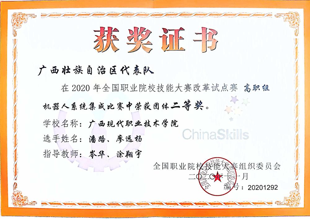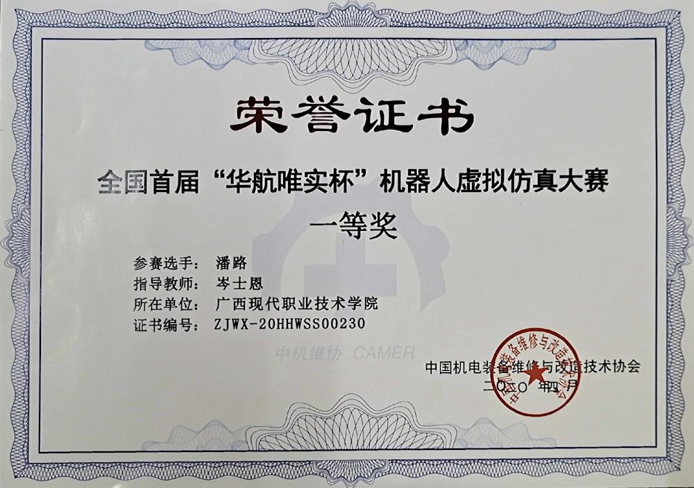 潘路,男,2000年8月出生,广西现代职业技术学院机电工程系2018级工业机器人技术专业学生。该同志先后担任了18机器人衔接2班安全委员、班长,机电工程系团总支学生会外联部委员、团总支副书记。思想上主动加强政治学习,利用课余时间观看新闻短视频,学习党中央颁布的决策和决议,了解中国共产党的光辉奋斗史。在生活中,该同志朴素节俭、性格开朗,平时很善于和同学沟通,很多同学有了困难也愿意来寻求帮助,在生活中建立了很好的人际关系。在学习上,自入校以来不肯放松一丝一毫,在期末考试中各科都取得了优异的成绩。积极参加各种专业技能竞赛,曾获得河池市“机电一体化设备组装与调式”二等奖,全国首届“华航唯实杯”机器人虚拟仿真大赛一等奖,广西职业院校技能大赛“制造单元智能化改造与集成技术”赛项和“机器人系统集成”赛项一等奖,全国职业院校技能大赛“机器人系统集成”赛项二等奖等荣誉。