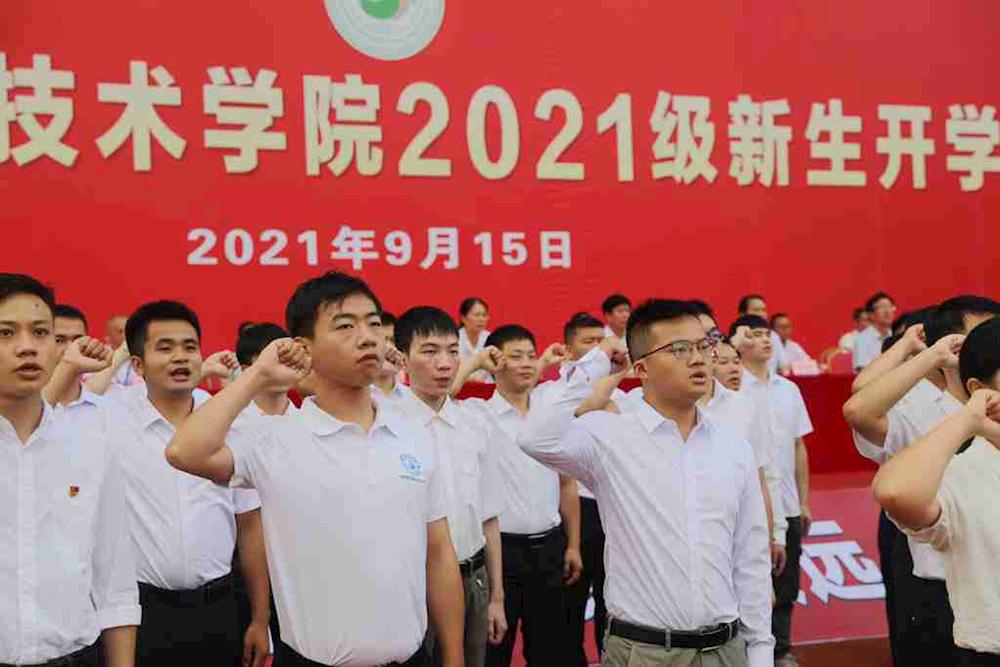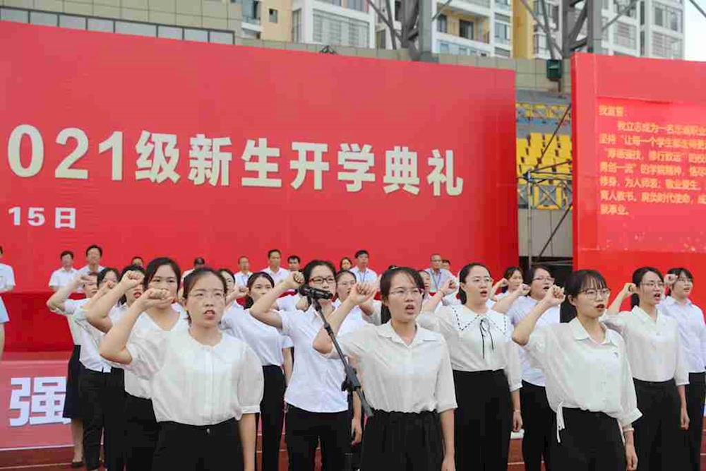 在开学典礼上,教师代表、新生代表、在校生代表分别发言;新教师进行就职宣誓、2021级新生进行入学宣誓。