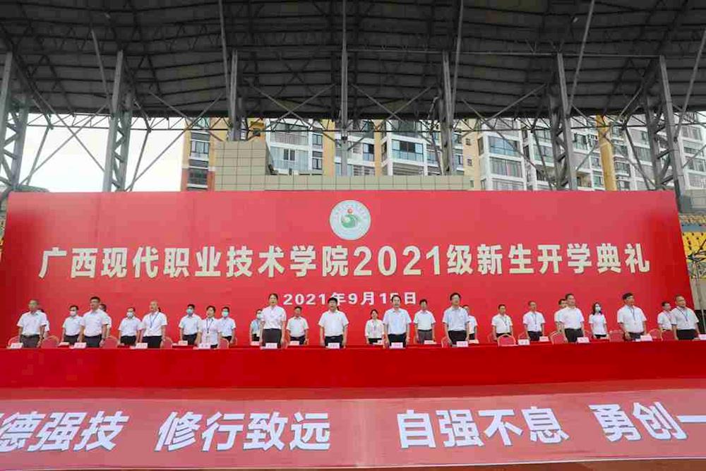 9月15日上午7时,我院2021级新生开学典礼在西校区田径场举行。河池学院党委副书记、学院党委书记韦伟松,院长黄绍光,河池市职业教育中心学校党委书记黄丹峻,副院长卢森焕、黄耀、杨奎出席。学院全体教职工、21级全体新生、班级助理参加开学典礼。典礼由副院长杨奎主持。